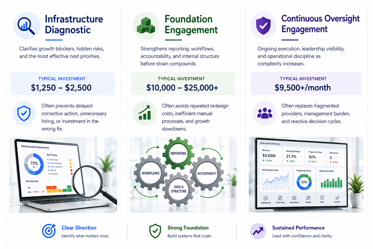 Start with the free 2-minute diagnostic to identify structural gaps, growth blockers, and the most effective next step.